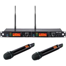 UF-20 Dual Channel Handheld wideband wireless system- 624-694MHz Includes: UF-20R Dual Channel Receiver & 2 x JSS-20 handheld transmitters UHF True diversity technology Maximum 2400 to 3000 selectable frequencies across 60 to 75 MHz Features: Remoset