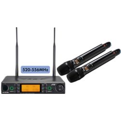 2 channel wireless hand held microphone system Frequency Preparation: PLL Synthesized Control Carrier Frequency: 520-556MHz Frequency setting: Ultrasonic / REMOSET (Transmit) Receiving mode: Antenna Diversity