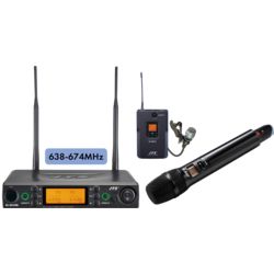 Single channel lapel mic system Freq preparation: PLL Synthesized Control Freq setting: JTS patented obstacles-free RF REMOSET Carrier Freq: UHF638-674MHz Receivinf mode: Antenna Diversity