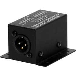 Unbalanced 10K Ohm2 x RCA to balanced 600 Ohm 3 pin male XLR with level control. -10dB max signal gain.
