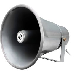 Weatherproof Metal flare with inbuilt multitapped 100 Volt transformer. 25 Watts/400 , 20 Watts/500 , 15 Watts/670 , 10 Watts/1K Frequency Resp: 300 ~ 8kHz Sensitivity: 110dB 310 Diam x 380mm (L) Input: 100V Line Transformer