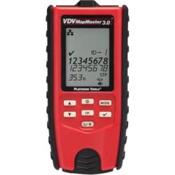 VDV MapMaster 3.0 Network & Coax Cable Mapping Field Kit w/ Durable Case Detects Open, Shorts, Miswires, Reverses & Split Pairs Measures Length in Feet/Meters Identifies cable location on active ports using flashing Port Link Light Backlit LCD screen with large icons