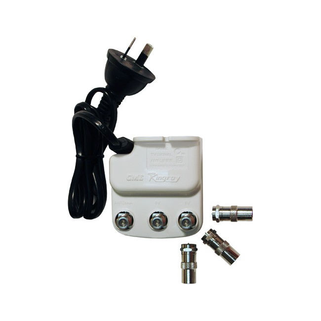 240V 50Hz 2.0A Mains supply - 44-860MHz TV Signal Booster Gain: 14dB to four outlets Noise figure 6dB typical High Output: 8 channels 98 dBuv LED Power Indicator SMD design