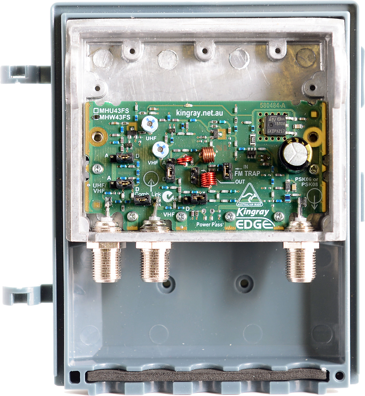 The Edge series features links allowing the amplifier to be configured to best suit the installation now and in the future. The range includes both wideband and UHF only modelsused to amplify the whole UHF band or alternatively by re-positioning the links, all services above 694 MHz are filtered, blocking future LTE transmissions.