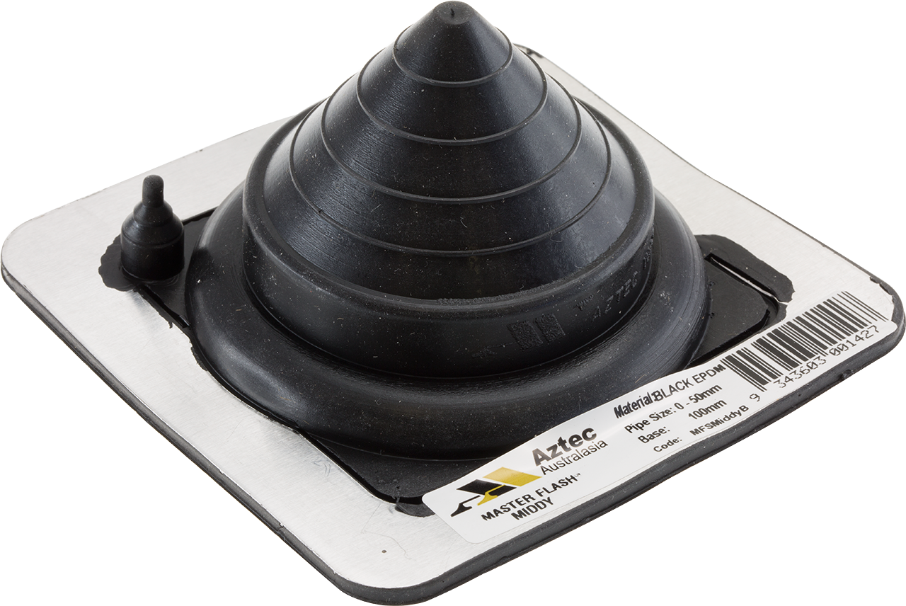 The base is designed to mould to most panel configurations and roof pitches regardless of pipe location.