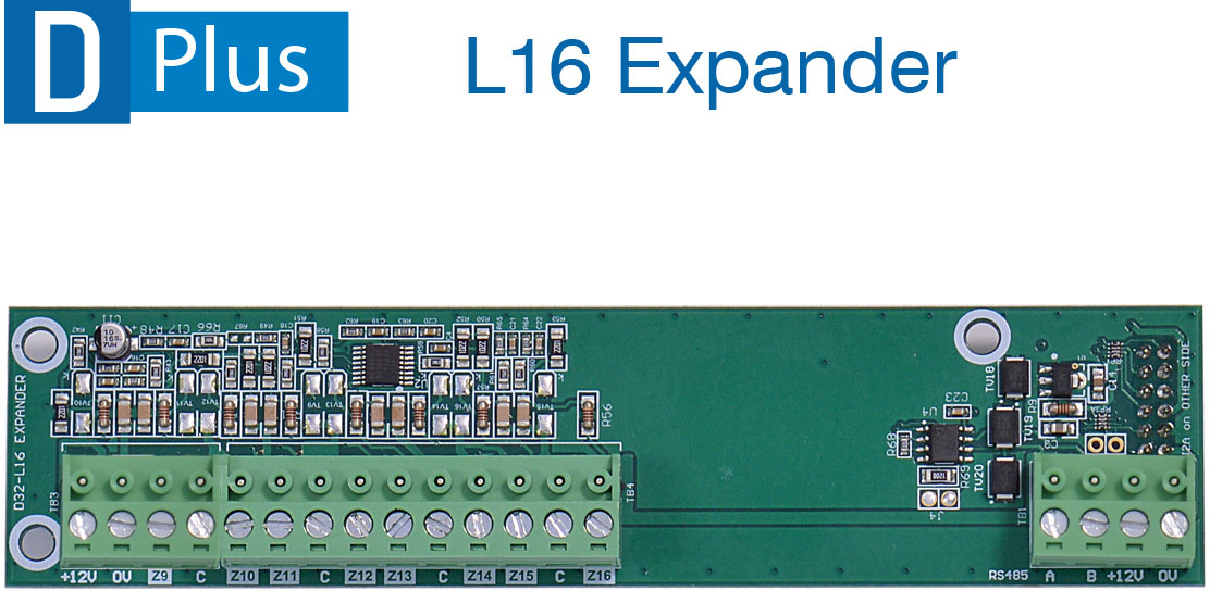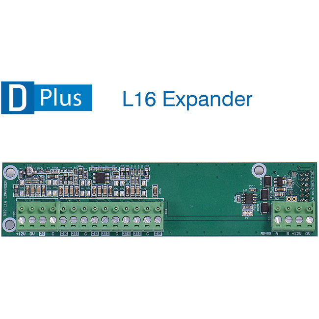 Simple and cost effective hardwired zone expansion. L16 Local Expander plugs into the DPlus main board providing an additional 8 zones - for a total of 16 hardwired zones at the base panel without zone doubling!