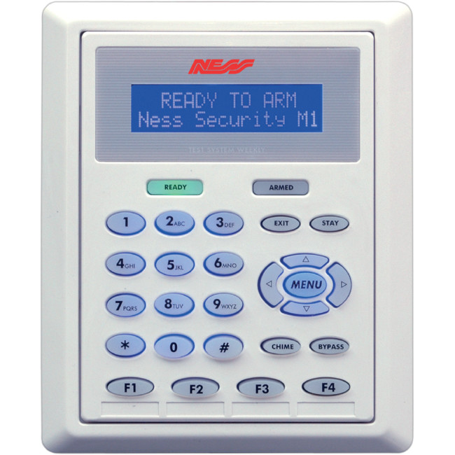 The Ness M1KP2 is a low profile, addressable LCD Keypad for the M1 Cross Platform Controls.The M1KP2 is compatible with "external" proximity readers which utilises standard 26 Bit Wiegand format, allowing cards or fobs to be used for Arming, Disarming or door access control.The user-friendly menu easily guides you through the full list of automation tasks, programming, systems diagnostics, and much more.With the addition of an M1 Flush Mount Kit, the KP2 can be mounted discreetly and stylishly into any Gyprock wall.
