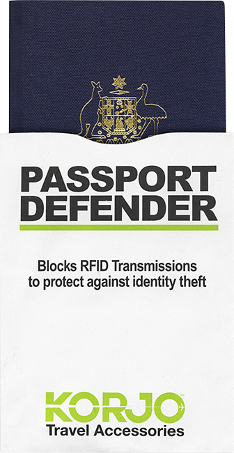 The KORJO PASSPORT DEFENDER has a patented embedded RFID Shielding Substrate which prevents RFID theft.