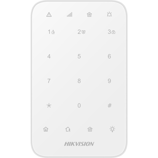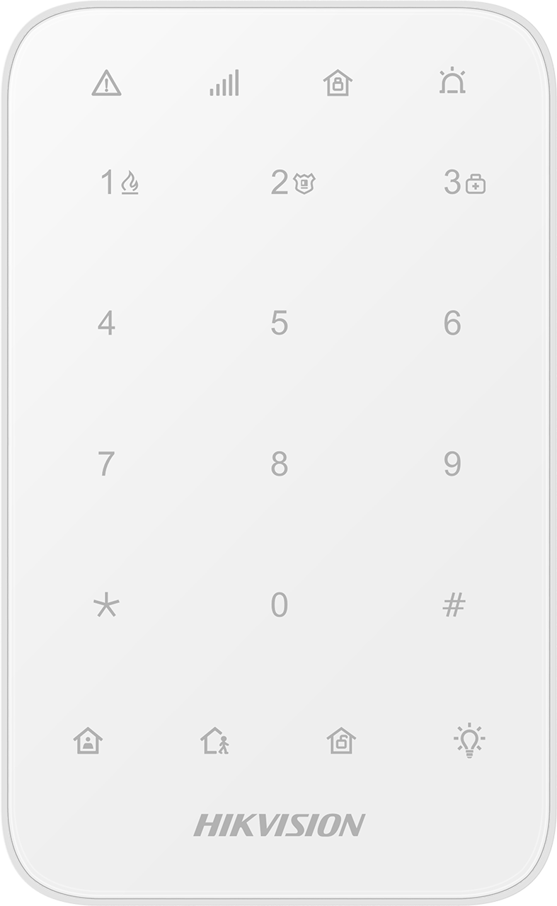 The DS-PK1-E-WB series wireless keypad can connect to AX PRO for alarm control and operation.