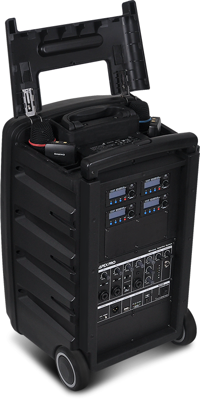 The Chiayo Apex Pro is a versatile portable pa speaker with dual powerful 250W Class-D power amplifiers built in, 2-way 250 watt speaker system.