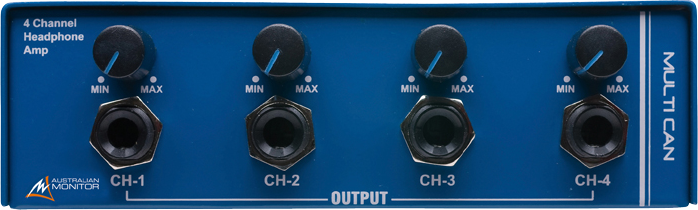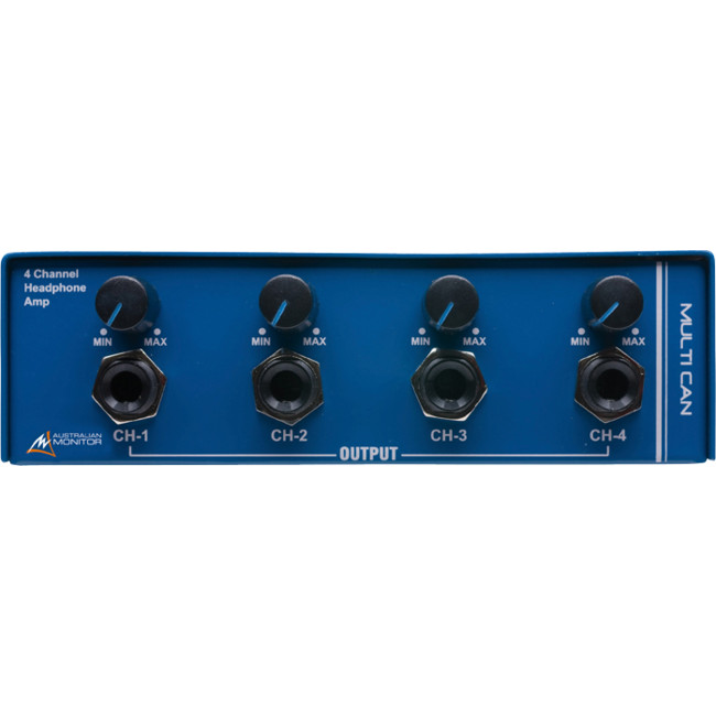 4 Channel Headphone Amplifier The MULTI CAN is a compact yet high-quality 4 channel headphone amplifier, featuring 6.35mm TRS, dual RCA and dualXLR stereo inputs and 6.35mm TRS headphone outputs. The MULTI CAN also offers individual output level controls per channel.
