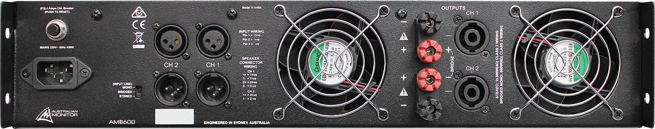 The AMB1600 features individual front panel volume control, level meter, clip and protection indicators. The AMB series of power amplifiers have been specifically designed and built to offer Australian Monitor customers a reliable, outstanding value for money amplifier for applications that require high quality audio reproduction that they can depend on.