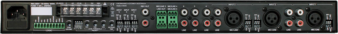 - 6 MIC or Line level rear inputs with XLR, Euroblock and RCA connector types