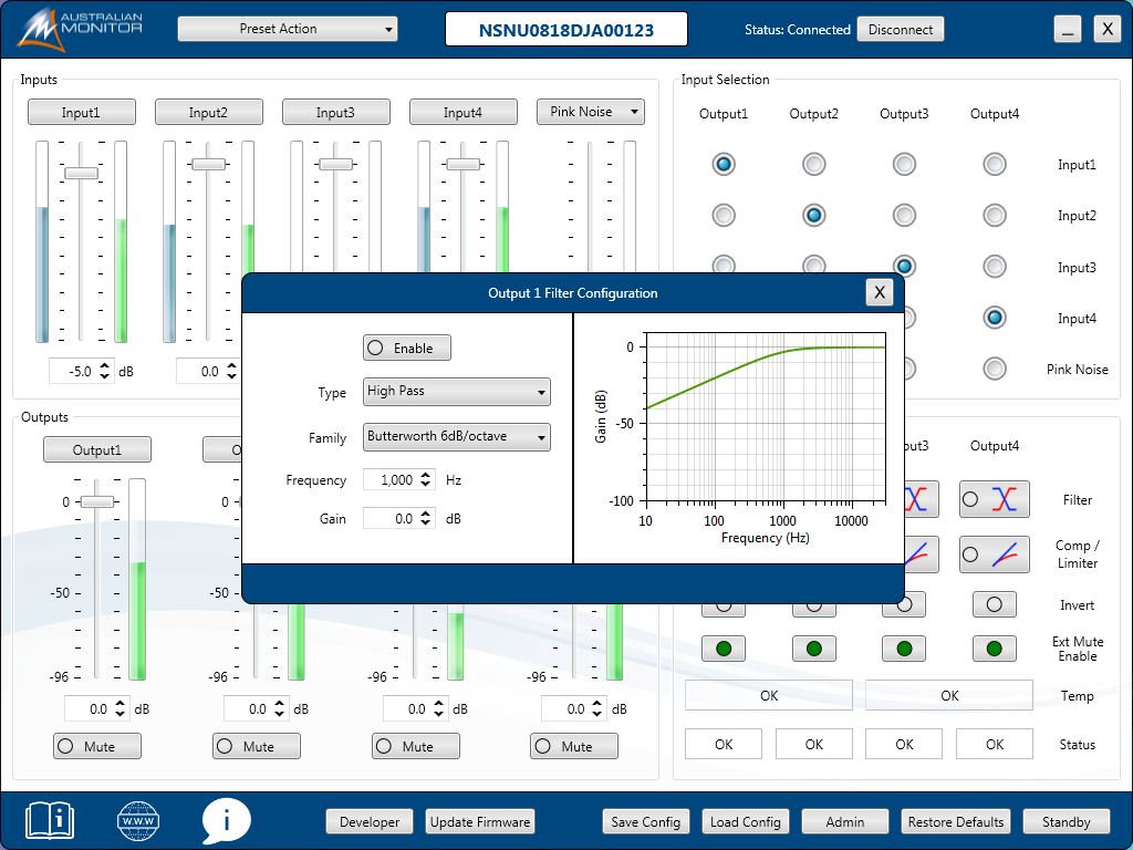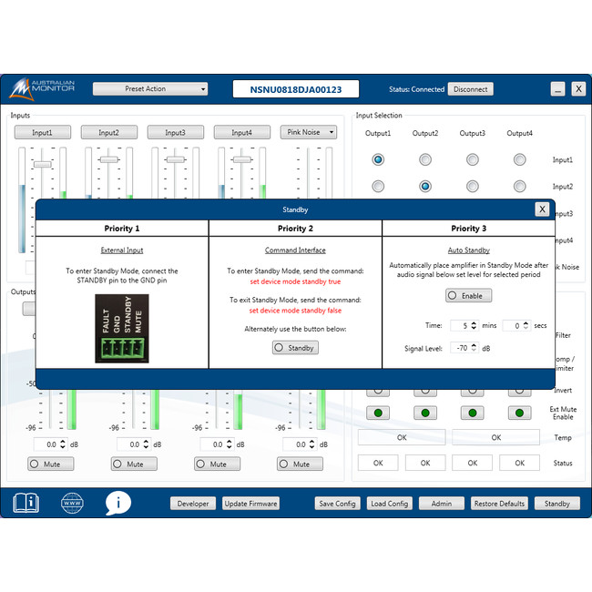 The control software allows you to modify signal routing, DSP settings, channel naming, retrieve status information and more.