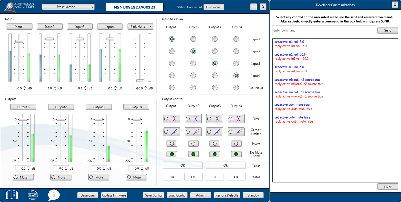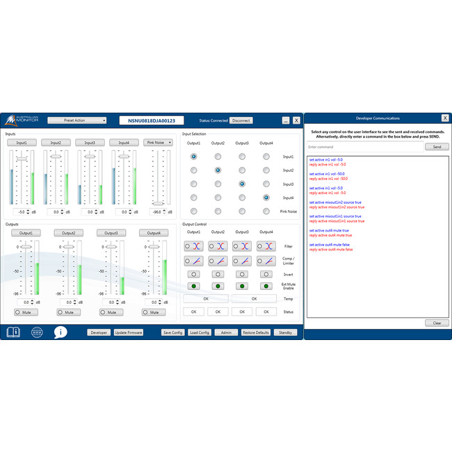 Enter "Developer Mode" in the PC application to easily see the commands being sent and received from the amplifier.