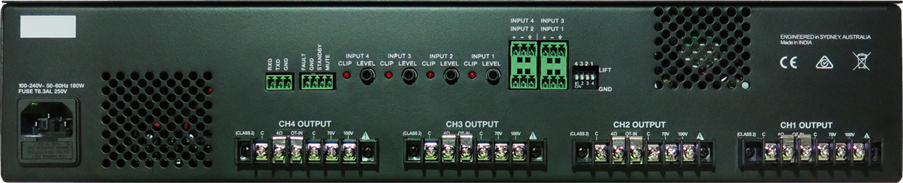 All amplifier channels offer 100V, 70V and 4? output options so you can choose the output configuration to match your application.