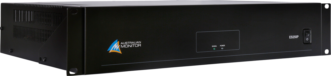 The ES250P power amplifier delivers 250 watts at 100 voltor 4 ohm in a 2 RU package.