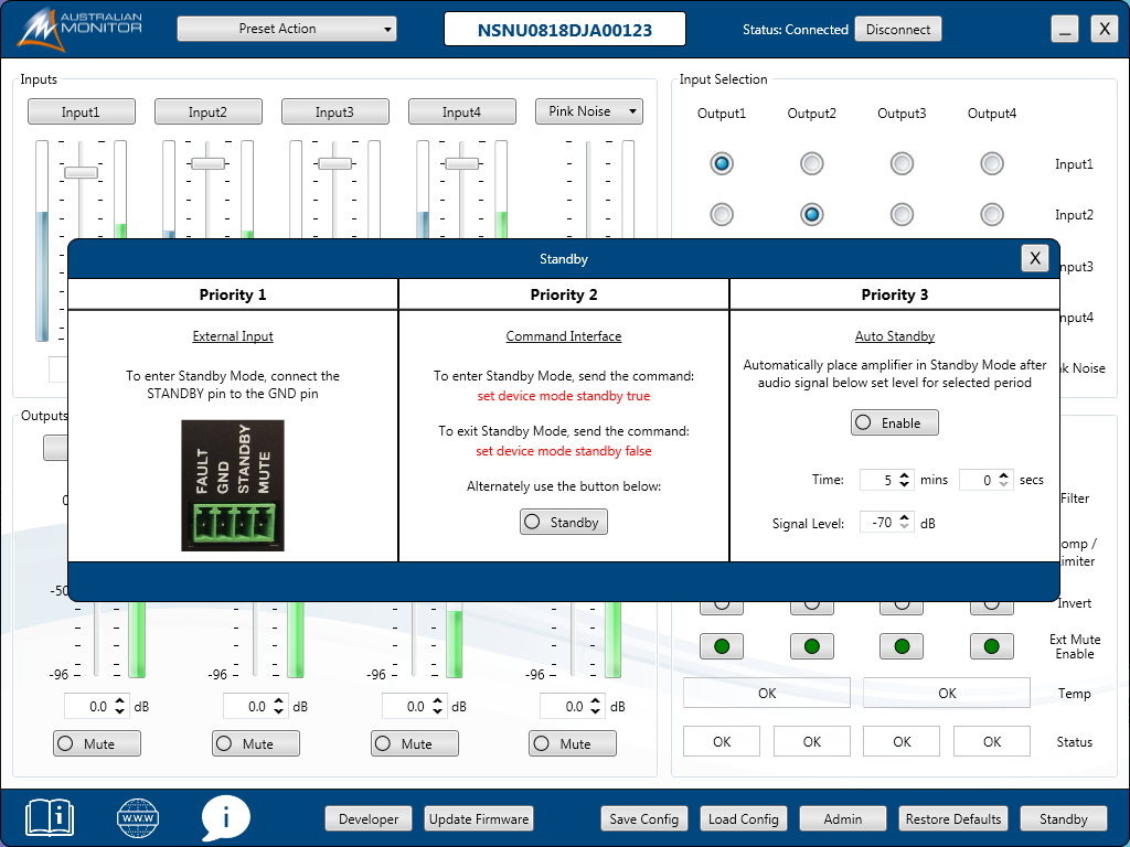 Enter "Developer Mode" in the PC application to easily seethe commands being sent and received from the amplifier.