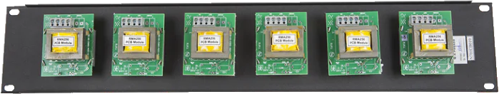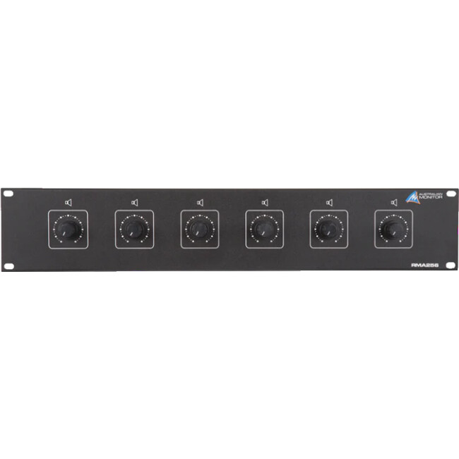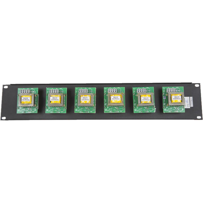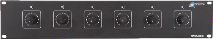 Easy and quick to install 100 Volt line, 6 x 25 watt attenuator mounted on a 2RU Rack Panel with off position and 10 volume steps.