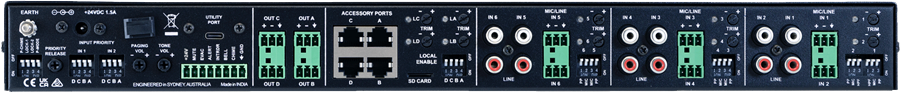 Additional features of the system include a two stage priority scheme, customisable tone generator, message player via micro SD card, external muting and control lockouts.