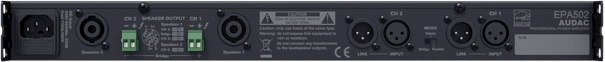 The EPA502 is built as a dual channel (Stereo) amplifier containing two individually controllable channels capable ofdelivering a power of 2 x 500 Watt in stereo mode.