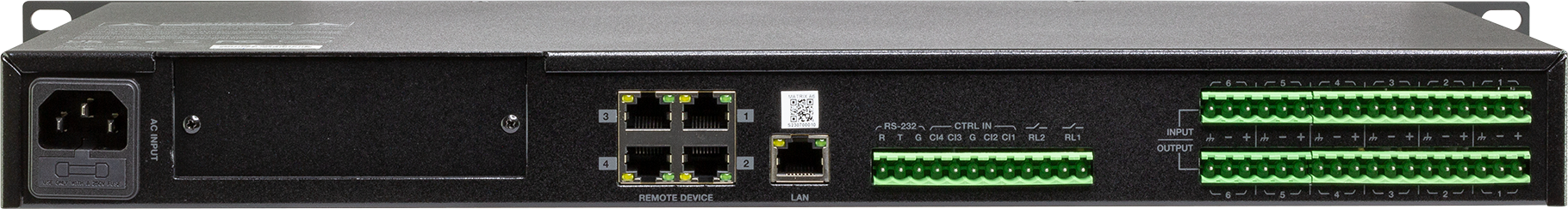 MATRIX-A6 is a dedicated music, paging, discussion, and zone management solution for commercial audio applications. It has 6 inputs and 6 outputs in a single device powered by a state-of-the-art DSP platform.