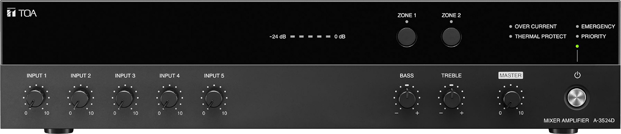 | Control output | Power remote, emergency, zone control: Open collector output, withstand voltage: 30 V DC or less, control current: 25 mA or less, removable terminal block (3.50 mm, 4 pins) |