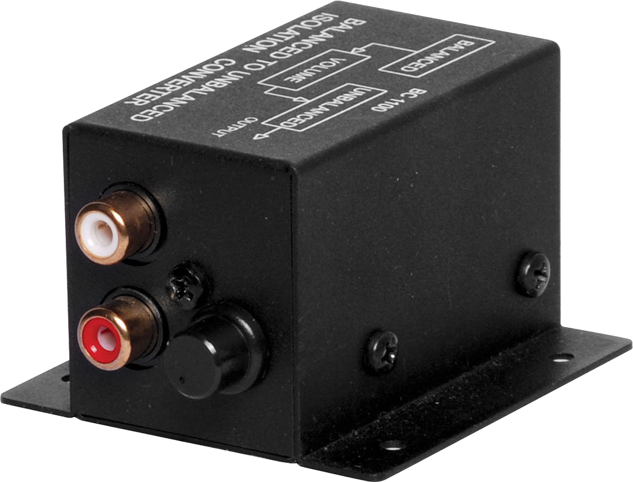 Unbalanced 10K Ohm 2 x RCA to balanced 600 Ohm 3 pin male XLR with level control. -10dB max signal gain.