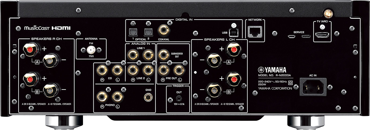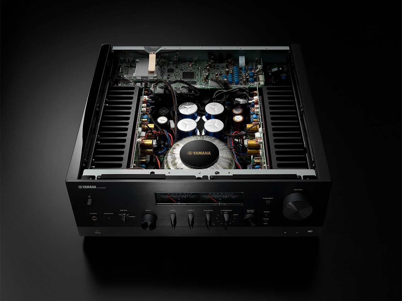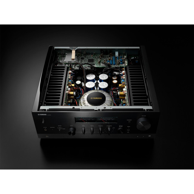 Just as with the Yamaha Hi-Fi flagship model, the R-N2000A employs the mechanical ground concept. The concept begins with the bolts of the feet welded directly to the main chassis, and continues with the large heat sink, power transformer and block capacitors also directly bolted to the chassis. This design prevents unwanted vibration, resulting in powerful, highly expressive low-frequency response and letting you feel the deep groove of the music.