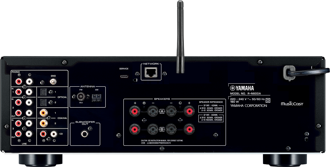 The R-N600A Network Receiver gives you full listening enjoyment of an exceptionally wide variety of music content, including your favorite streaming services, high-resolution sound sources, and even vinyl records all with Hi-Fi sound. With high-quality sound reproduction and design inherited from Yamaha's long technological expertise in Hi-Fi, this receiver delivers sophisticated sound and appearance for a total listening experience that's a step above the rest.