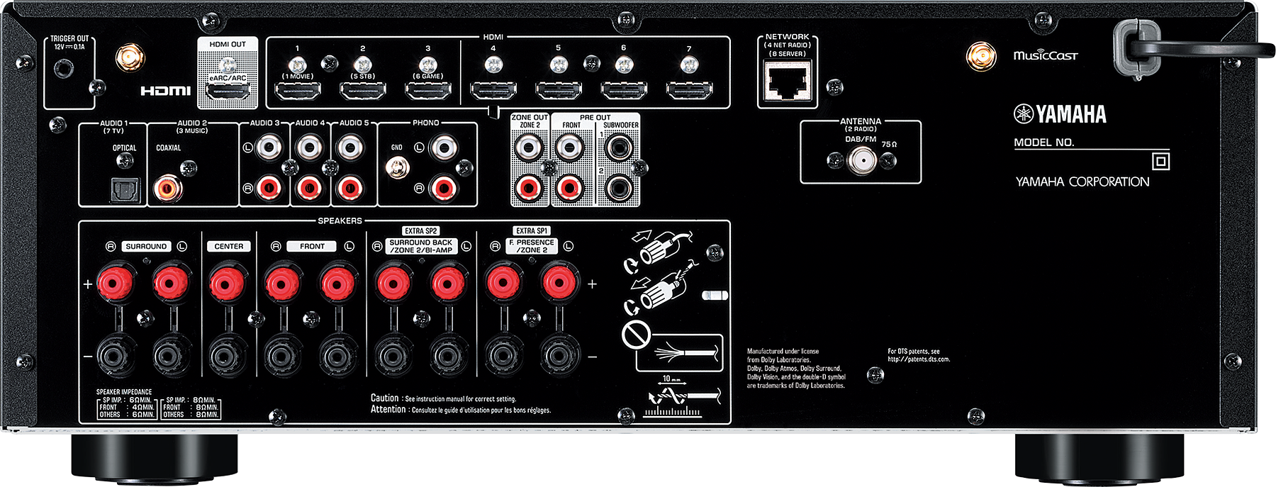 Combine this AV receiver with the MusicCast 50 orMusicCast 20 wireless streaming speaker and enjoy the amazing convenience of creating a home theater with wirelesssurround sound.