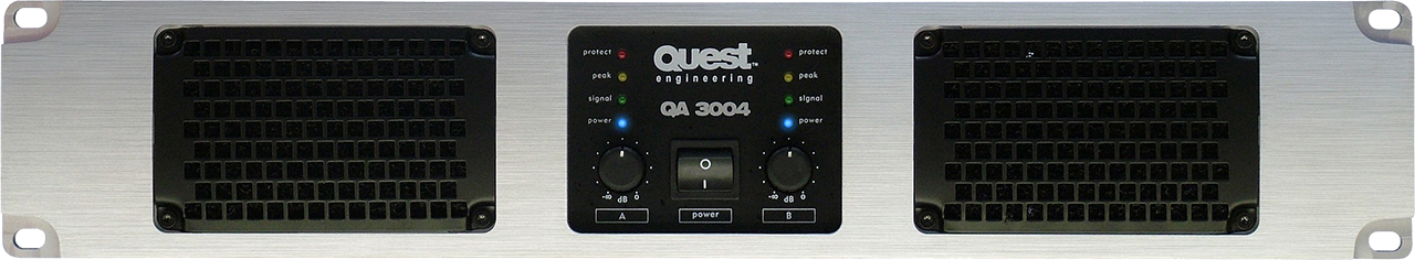 Quest QA Series power amplifies are built to work hard inthe tough environment of pro audio. Industrial spec multi-speed fans and generous heat sinks will keep the output stage cool even if the amplifier is installed in a dusty and poorly ventilated area.