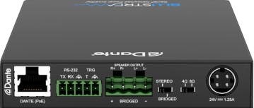 The NPA20DA features a 2 × 10W digital amplifier (1 × 20W mono) audio output and Dante® audio integration.