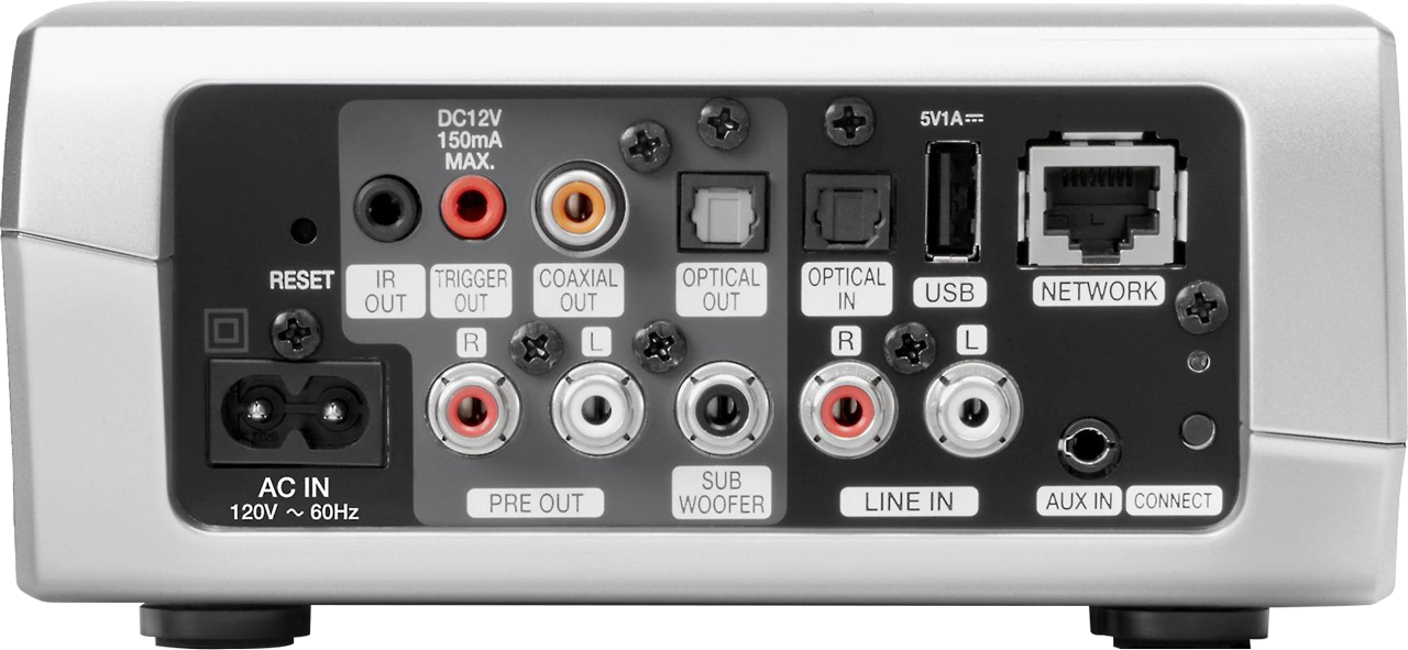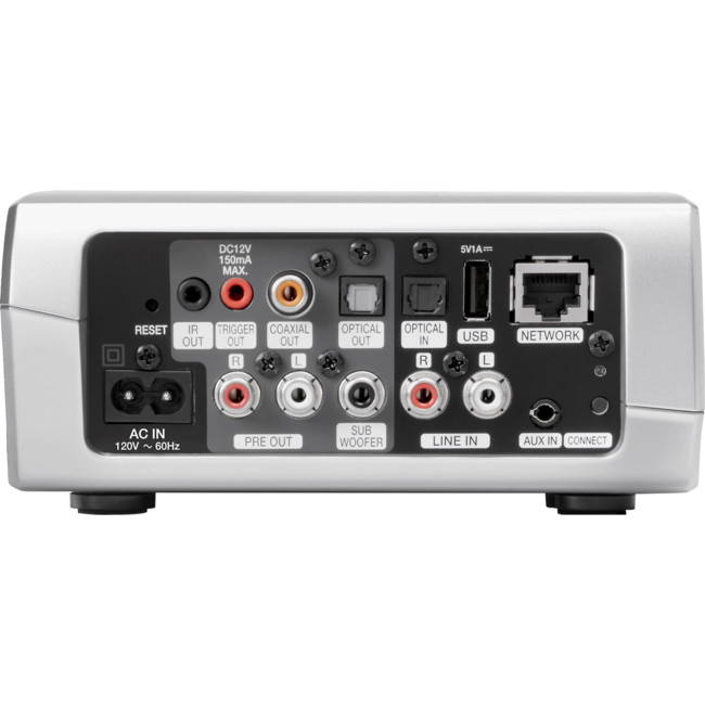 In addition to the stereo pre-amp outputs, there's also a sub output for connection to a powered subwoofer. Both coaxial and optical digital audio outputs are included for compatibility with the widest range of equipment, and the unit features an optical digital audio input. The HEOS Link is also equipped with a stereo line input (via RCA jacks) as well as an additional auxiliary input with a 3.5mm jack for direct connection to a portable player.
