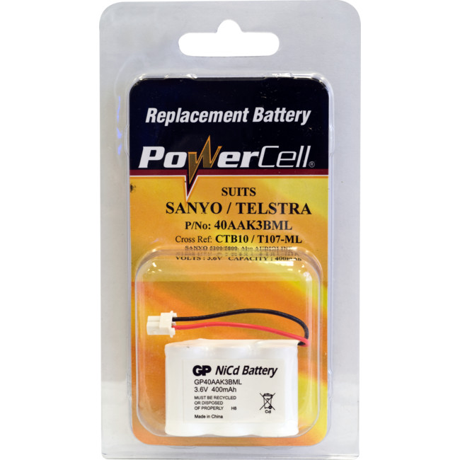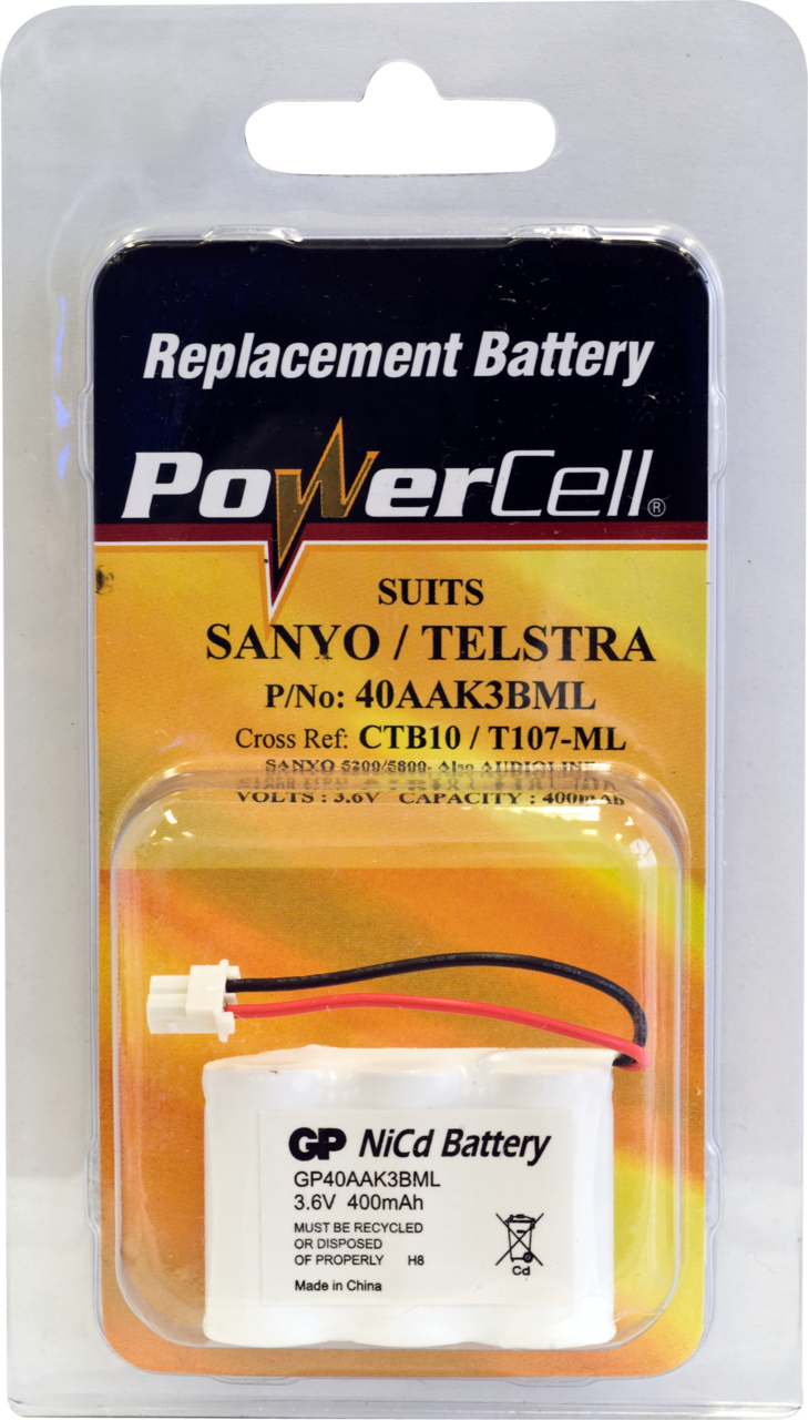 CTB10 - 3.6V NICAD 400MAH BATTERY SUITS TELSTRA CORDLESS PHONES