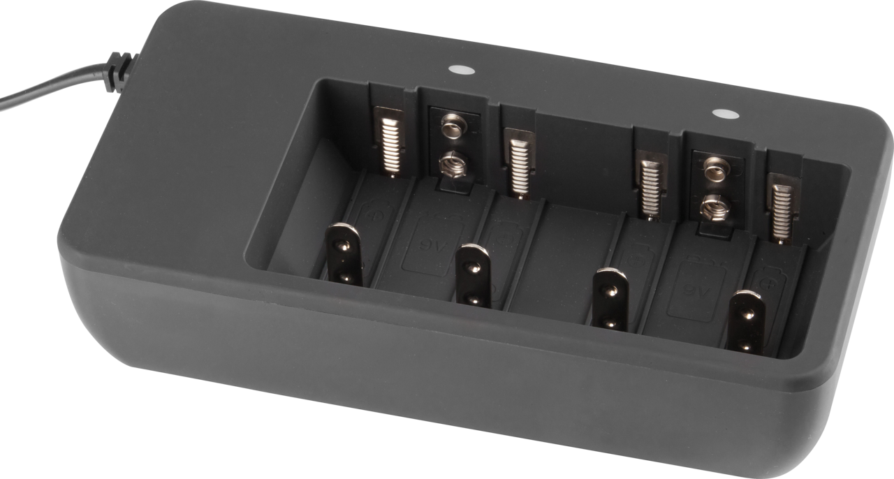 An affordable universal battery charger that will re-charge Ni-MH/Ni-Cd batteries inAA, AAA, C , D as well as 9V. It will also ensure long battery life by cutting-off the voltage when they are fully charged. The unit can charge in various configurations, for example 2 x 9V and 4 x AA batteries simultaneously. Specifications: