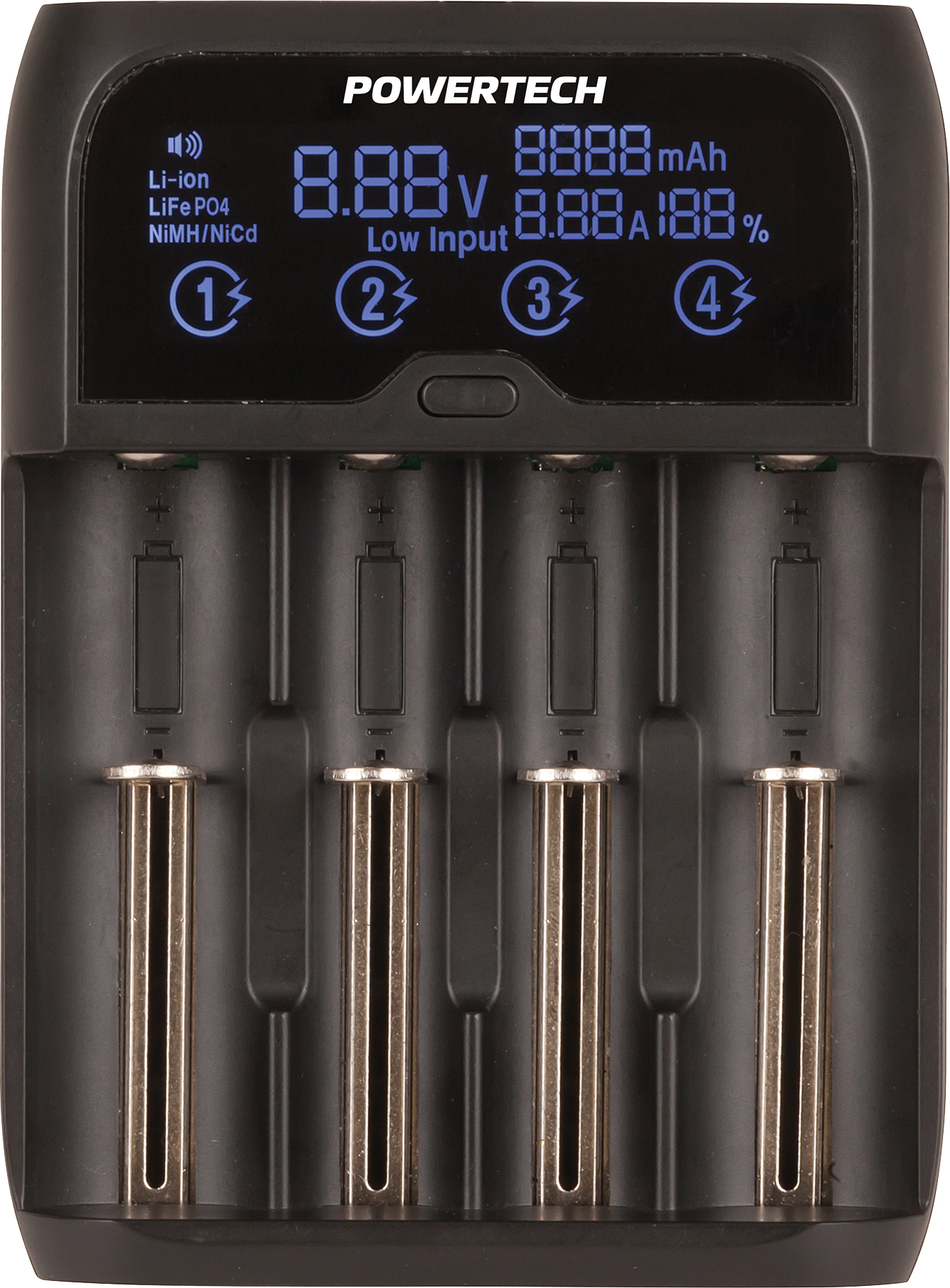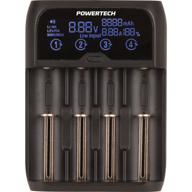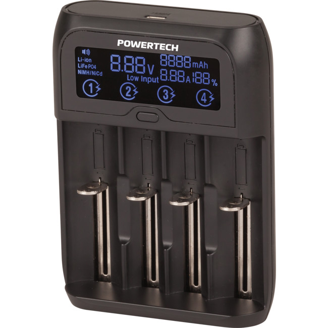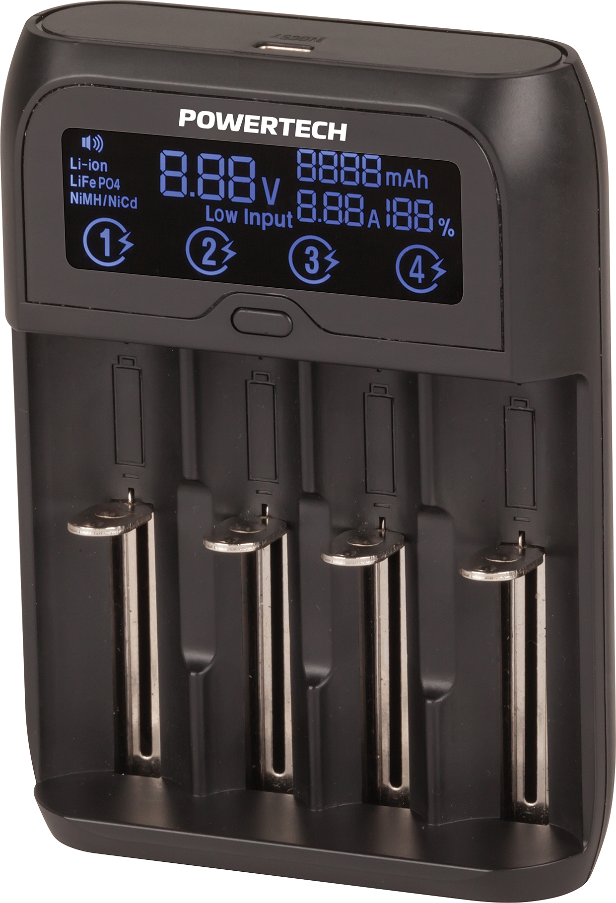 This intelligent charger has four independent charging slots to charge any combination of Ni-MH, Ni-Cd, Li-ion, or LiFePO4 cells at the same time. The microprocessor monitors each battery and provides a safe and effective charge using precise Pulse Width Modulation (PWM) technology. A single Li-ion or LiFePO4 cell can also be fast charged at up to 2A. The high contrast LCD screen provides real-time battery monitoring, including charging current (A), charging capacity (mAh), voltage (V) and battery power (%). Features include alarm and error messages for bad batteries, reverse polarity protection, short circuit, over-charge, and over-temperature. Power comes from an available USB port using the supplied USB Type-C power cable. Features: • Suits Ni-MH, N-Cd, Li-ion & LiFePO4 • Intelligent fast charging up to 2A • Independent charging slots • LCD screen Supported Batteries: 3.6-3.7V Li-ion 3.2V LifePO41.2V Ni-MH/Ni-Cd