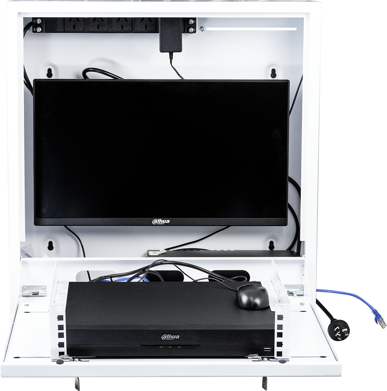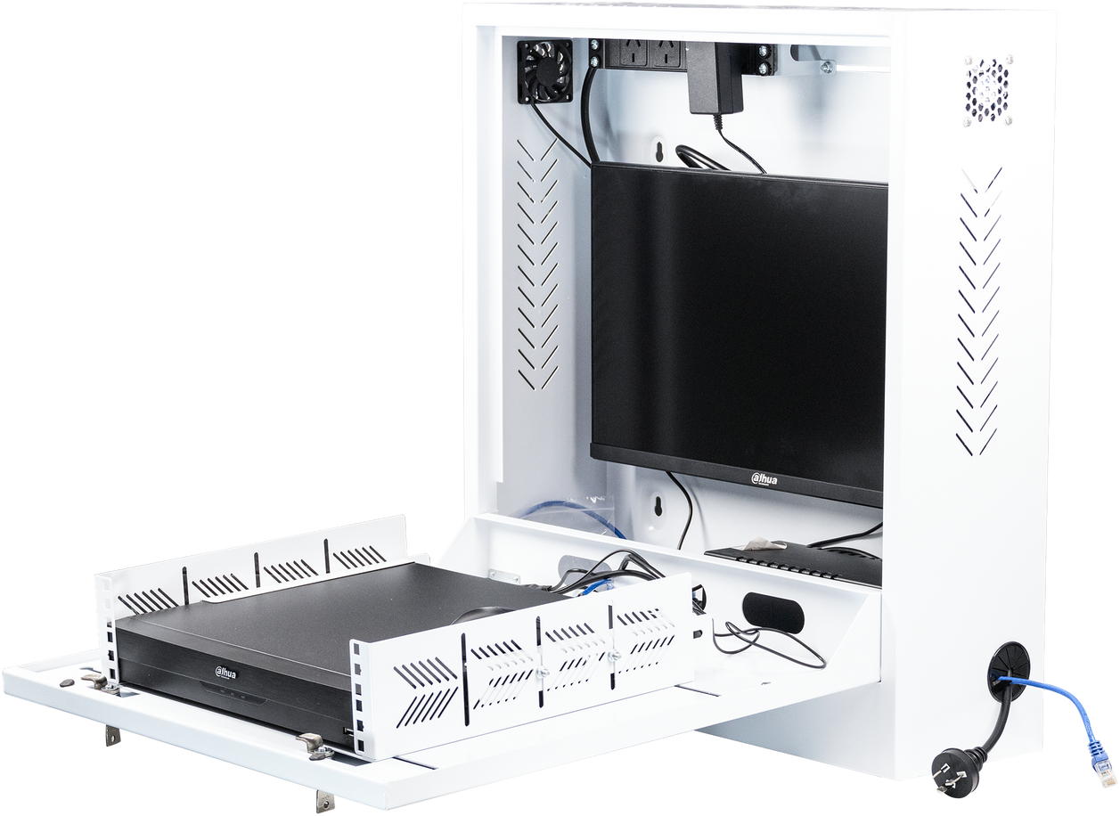 In addition, there is a 5-outlet PDU that's already installed that can also be swapped with any standard 19” rack PDU if needed. For a smart and sleek solution for your security needs, choose the DataTek 24SECCAB Security Cabinet.Please note: NVR, Monitor and accessories are not included with the cabinet.