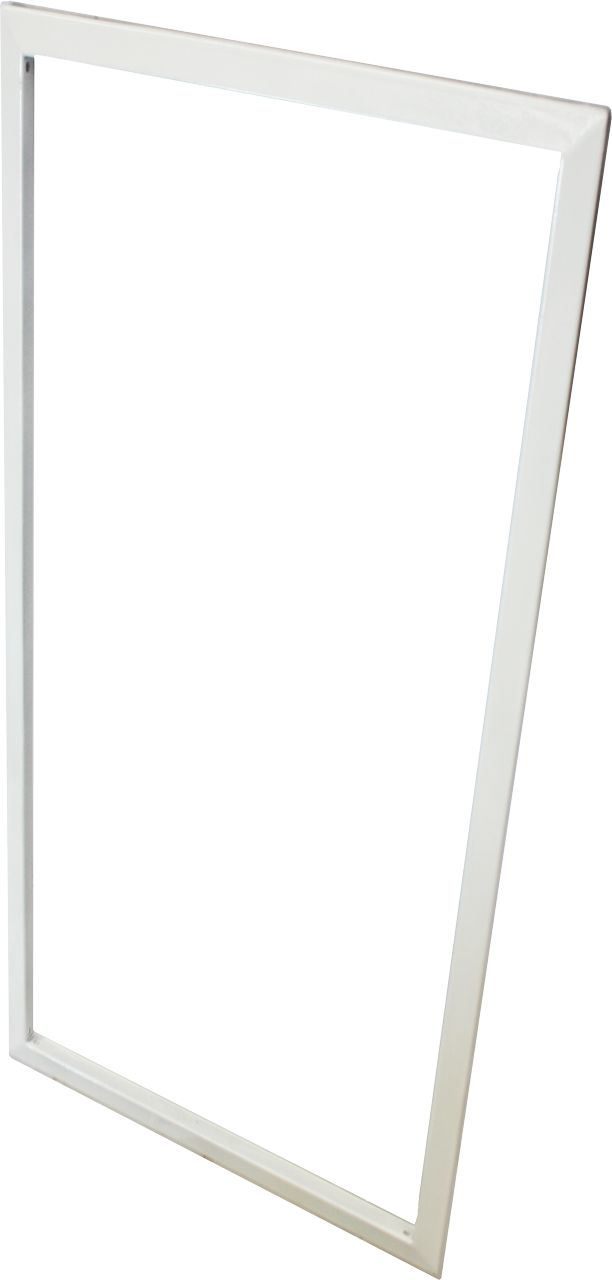 The flush frame kit is supplied assembled. The frame simply slides over the recessed enclosure and gives 25mm extra coverage to hide the cut-out.