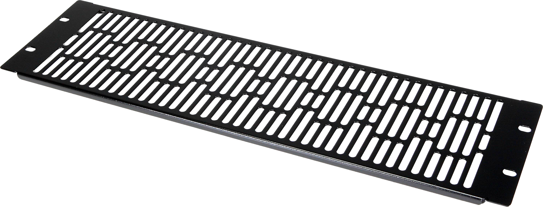 The SANUS Component Series CAVBP3 3U steel vented blanking panel maintains consistent airflow to prevent improper cooling or heating of AV components inside an AV rack. Sturdy and durable construction.