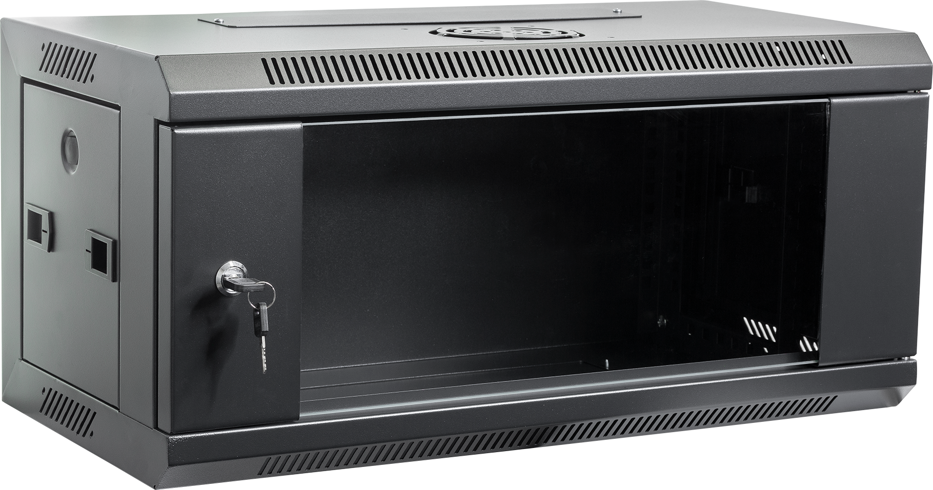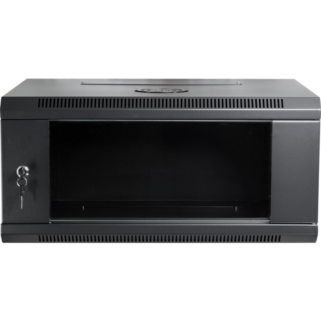 PRE-ASSEMBLED 6RU WALL MOUNT CABINET 600X450MMX368MM Removable side panels Top/Bottom cable entry knock-out plate Tempered glass front door Front door swing direction changeable