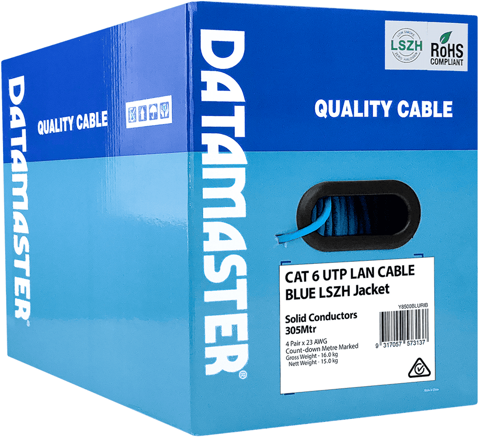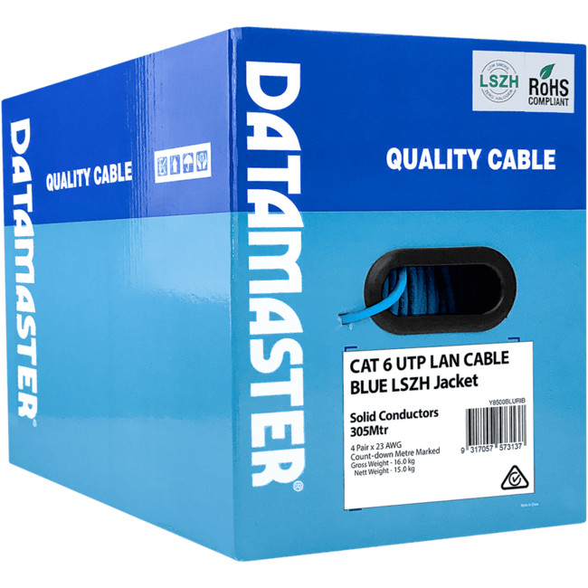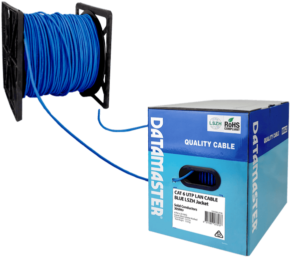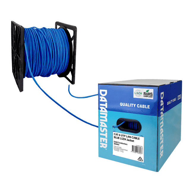 The Datamaster Cat6 Solid UTP Cable 305m Reel In Box in Blue is engineered to meet the demands of modern networking installations, providing reliable performance and ease of use. With its advanced features and lifetime warranty, it's the ideal choice for professionals and enthusiasts alike.