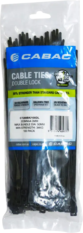 • Double Lock® cable ties have a loop tensile strength of 34KG and is made from durable, 100% nylon 6/6 material.