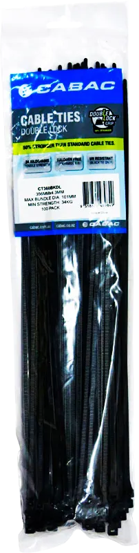 • Double Lock® cable ties have a loop tensile strength of 34KG and is made from durable, 100% nylon 6/6 material.