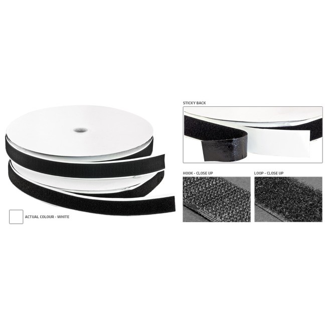25MM HOOK OR LOOP CONTINUOUS REELS WITH ADHESIVE BACKING- PER 25MT ROLL