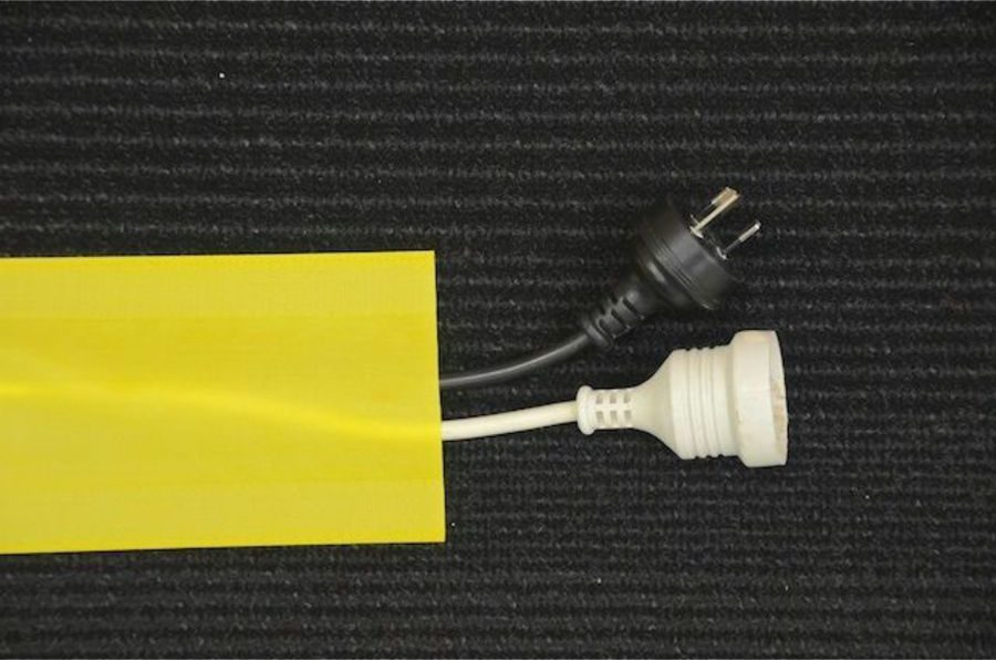 Conceal unsightly cords and eliminate trip hazards with this low profile cord cover. Its 'cut to length' flexibilityavoids the constraints of similar cord covers. Just lay it over your cords, and let the “hook and loop” technology on the underside do its job to secureyour cables in place. The channel along the middle allows you to reconfigure your set up without the need to remove any cords. Re-usable over 1000 times, machine washable and afraction of the price of other carpet cord covers. The idealsolution for any office, boardroom, meeting room or public space. • 100mm wide • Handy dispenser box available when purchasing 25m • Yellow in colour to highlight cable runs • For use on any nylon based carpet