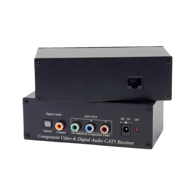 The Component Video & Digital BALUN is designed for component video signal (Y, Pb, Pr) and one digital audio be transmitted via cost effective one CAT5 UTP cable. Used inpairs, the Component Video/Digital Audio BALUN supports 408i/p, 720p and 1080i video formats for hi-definition (HDTV) video application. Application for control rooms, multimedia rooms, communications centers, convention facilities, classroom video corporate projection system.