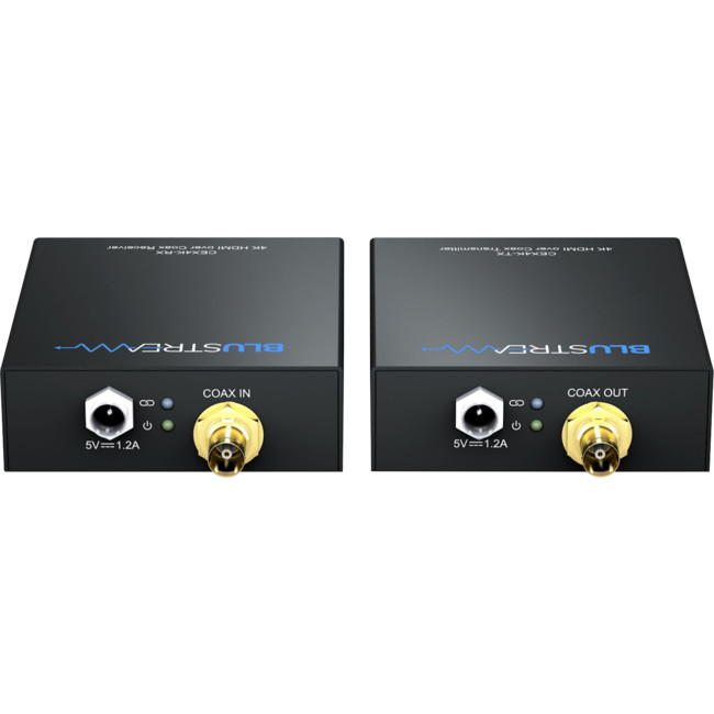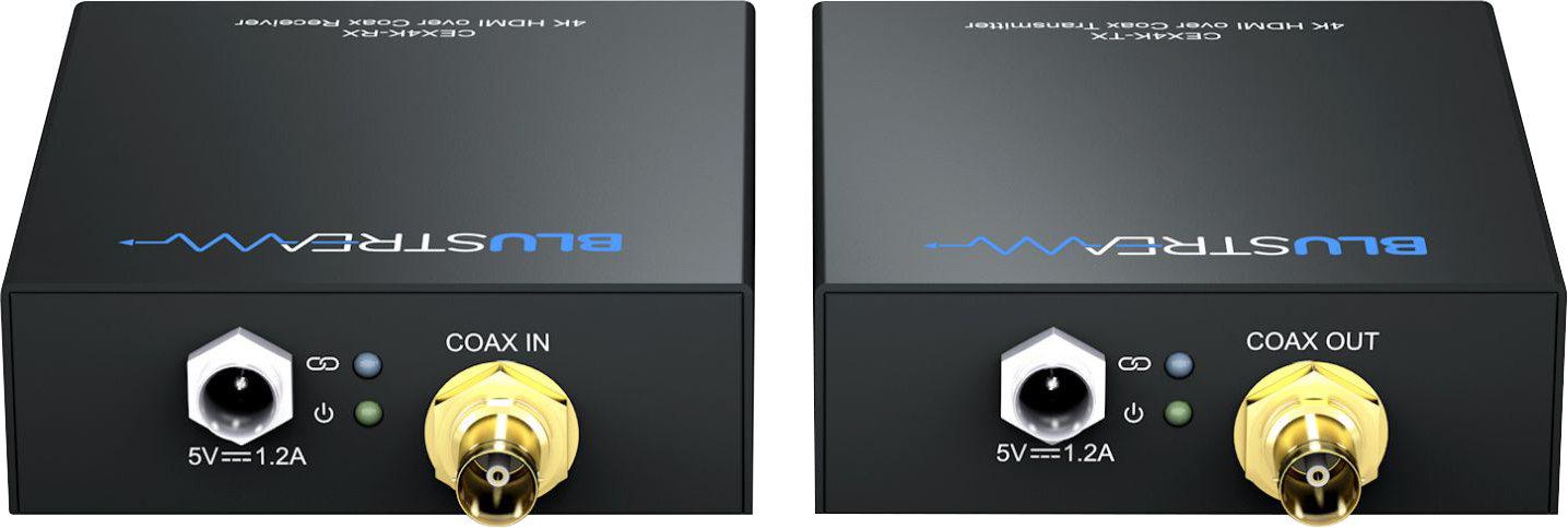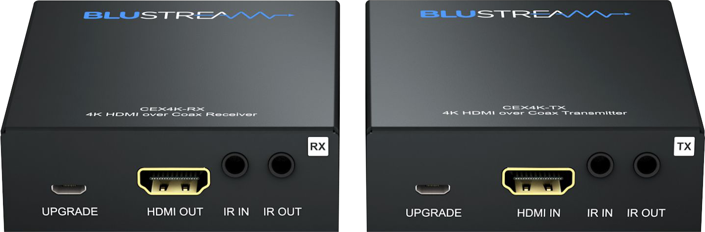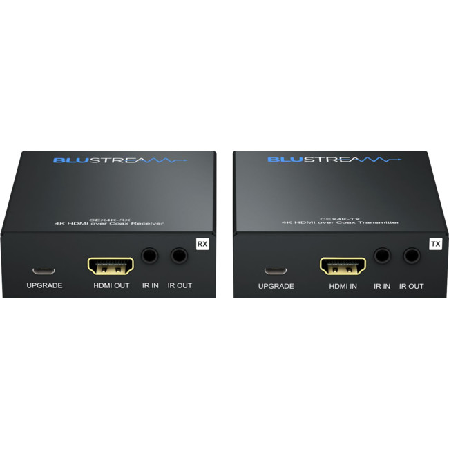 Blustream's CEX4K-KIT HDMI extender set offers HDMI distribution over a single Coaxial cable. CEX4K-KIT delivers HDMI & Bi-directional IR up to lengths of 100m @ 4K 60Hz 4:4:4