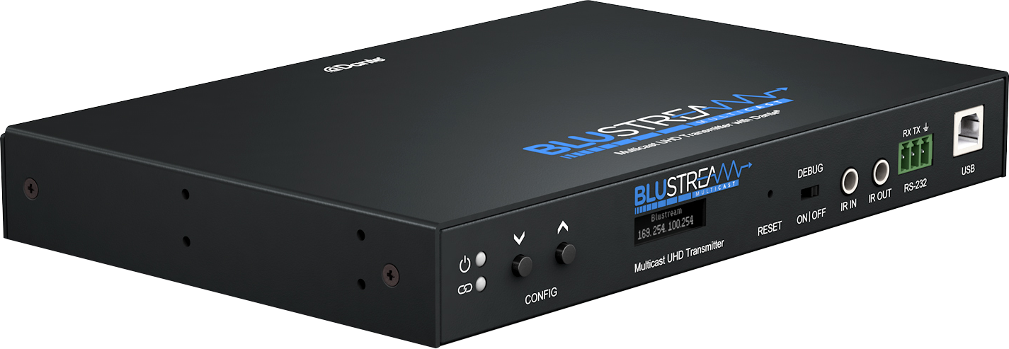 Blustreams UHD Multicast distribution platform allows virtually latency free (1 frame) distribution of 4K HDMI video over a 1GB Managed Network.