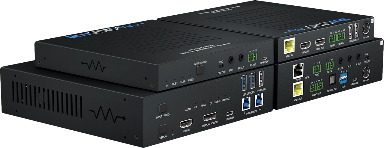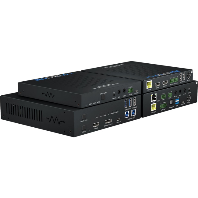 - Features 1 × HDMI, 1 × USB-C and 1 × DisplayPort™ input on the HDBaseT™ Transmitter with manual or auto source selection.